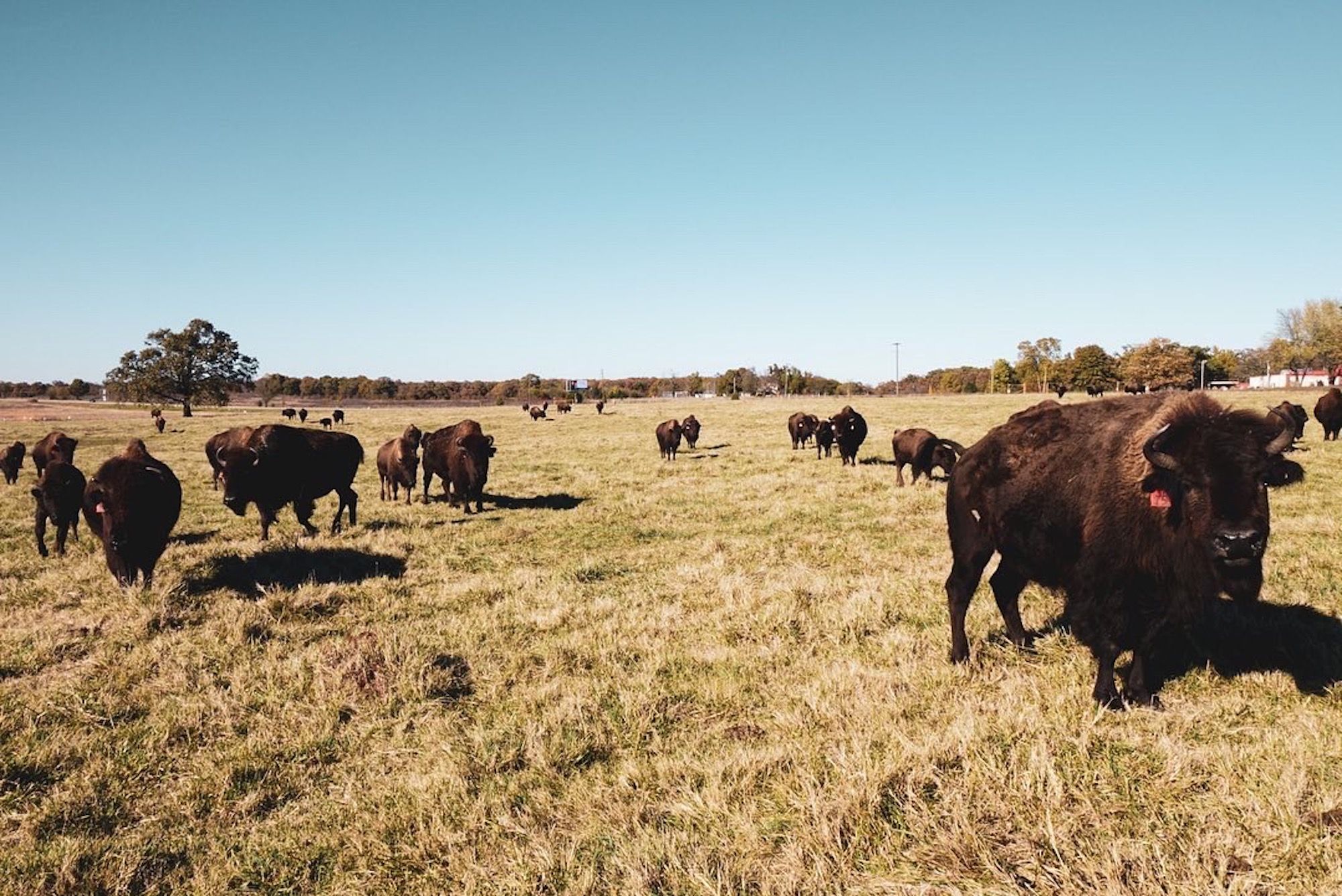 Bison have been playing an important role in the restoration of the land. In the 200 acre ranch located next to the Quapaw Downstream Casino Resort, the Bison are continuing to naturally digest nutrients to fertilize the soil, sequester carbon, graze efficiently, and ultimately combat climate change. A unique component to the regenerative grazing practices of bison is that they distinguish wildflowers from grass and will not eat the wildflowers in the prairies. Unlike cattle which consume all of the grass and wildflowers on prairie land, the bison eat only grass. Overgrazing from cattle has led to many Midwestern states having critically endangered ecosystems. It might seem simple, but by leaving the wildflowers, bison are allowing for the better distribution of nutrients in the soil.